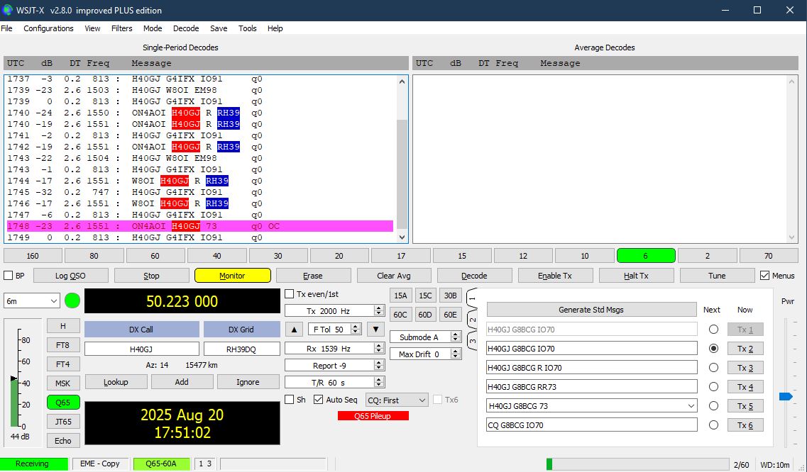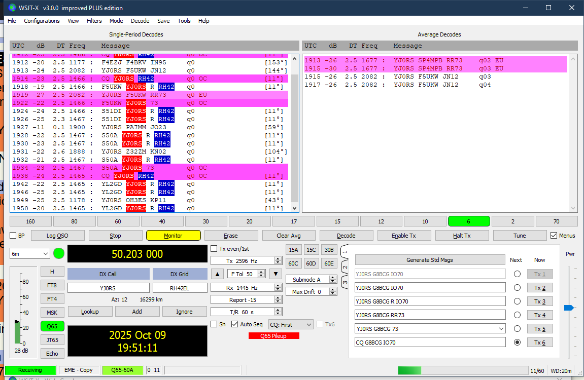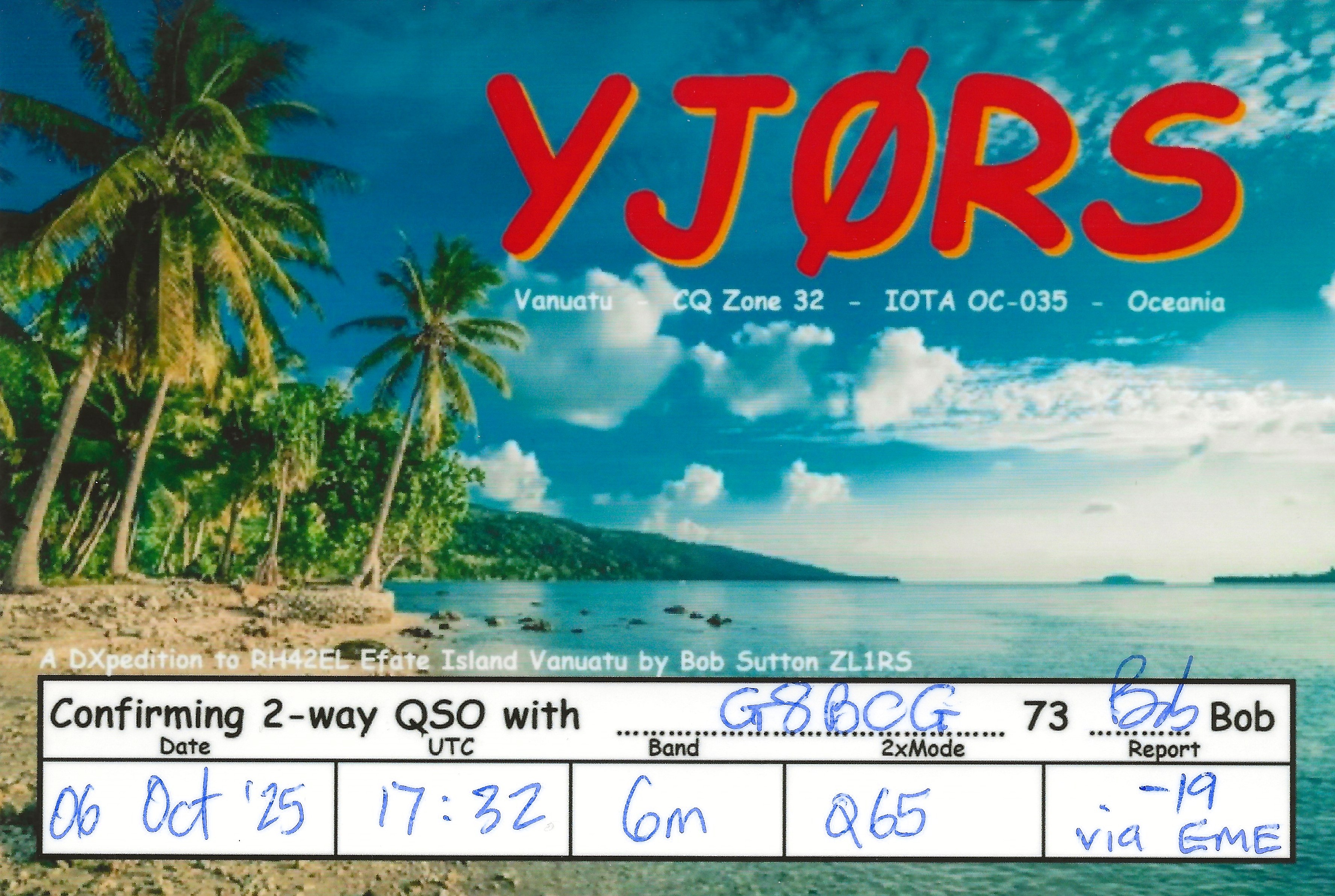 [ Home ] [ G8BCG ] [ 2025 DX ] [ 50MHz DX Maps ] [ 50MHz G DXCC Firsts ] [ G8BCG firsts 50MHz ] [ EME 50/144MHz ] [ 50MHz DXCC ] [ 50MHz QSL Gallery ] [ 40MHz - 60MHz ] [ DX Log / Audio Clips ] [ 50MHz Harris Amp ] [ 70MHz ] [ 144MHz ] [ 432Mhz ] [ Contest Set-up ] [ Overseas Operations ] [ GJ8BCG/P ] [ EA8/G8BCG IL39 ] [ Suppliers ] [ Club Log ] [ Useful Stuff ] [ Marconi FDCs ] [ 50MHz Bandplan / Beacons ] [ QO-100 Satellite ] [ Table of Contents ] All content © G8BCG 1993-2025